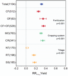 图2 作物产量响应土壤管理类型的平均效应大小