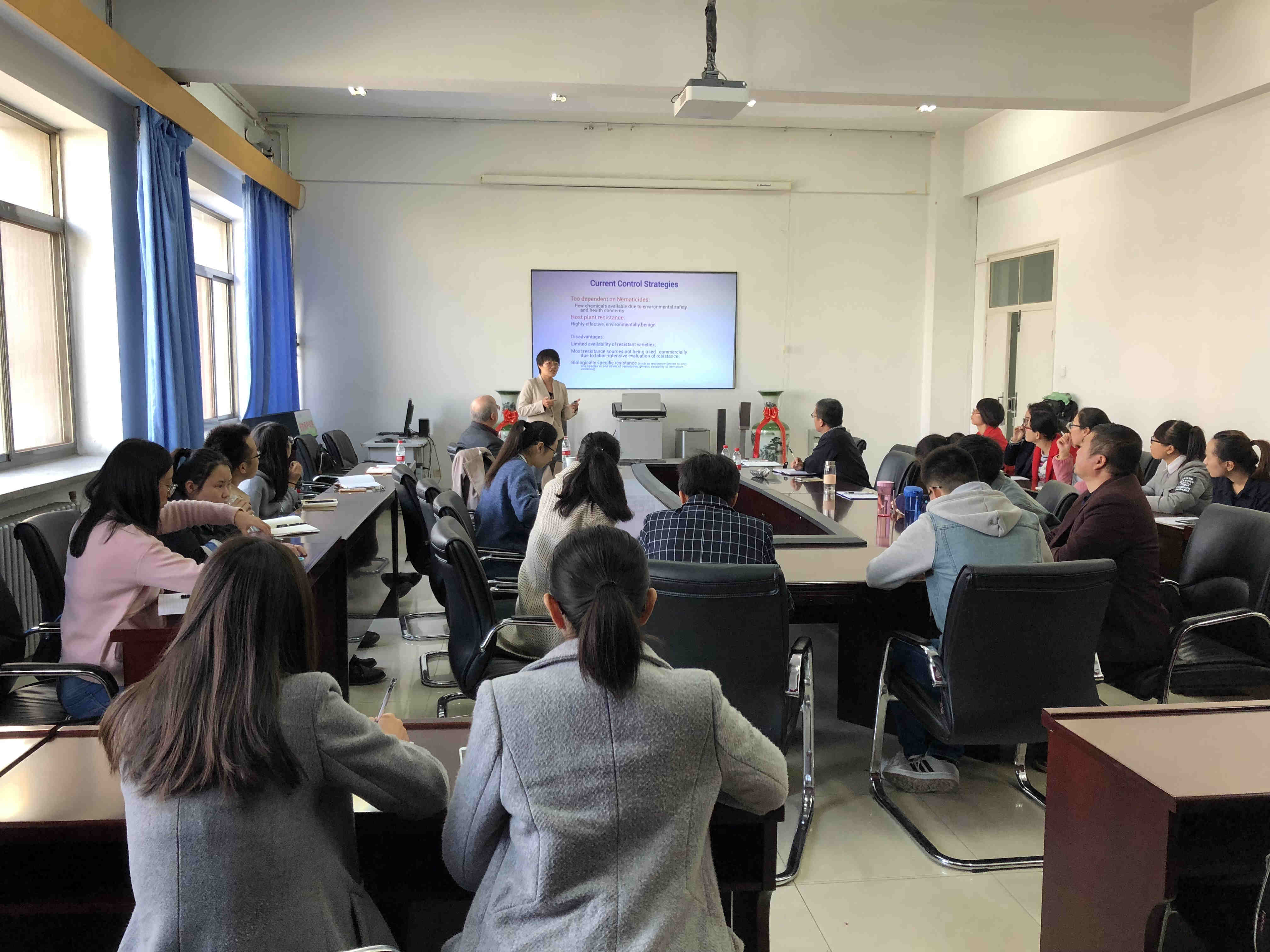 王从丽研究员和李春杰副研究员陪同Edwin E. Lewis教授访问了甘肃农业大学植物保护学院,该学院同我所就昆虫病原线虫方面有多年合作研究。3人分别为师生作了报告,探讨了如何进一步合作研究中国东西部和美国昆虫病原线虫生物学特性差异,为田间害虫生物防治提供理论依据。